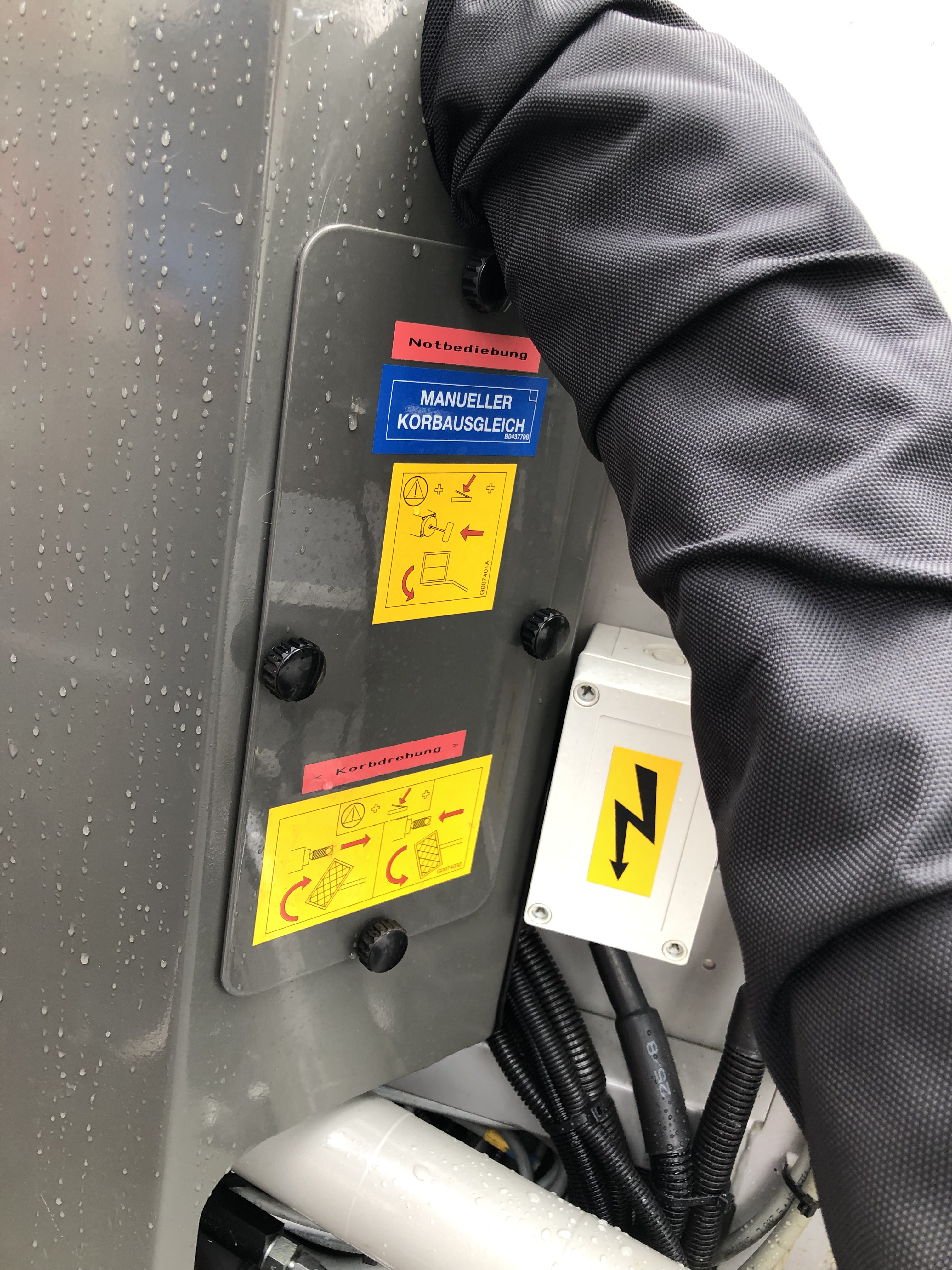 Fällt der Fahrzeugmotor oder die Elektronik komplett aus, gibt es trotzdem Möglichkeiten, den Korb noch zum Boden zu bewegen.